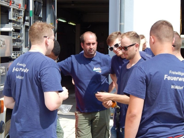 Eine Spezialübung setzte Kommandant Frank Eck für die Mitglieder der Feuerwehr Walldorf am 22. Juli an. Der Fokus der Übung lag darin Einweisungen für Geräte durchzuführen, die in letzter Zeit beschafft wurden, oder bisher nur von einer kleineren Anzahl von unterwiesenen Personen eingesetzt werden konnten. An mehreren Stationen wurden die jeweiligen Geräte vorgestellt und ausprobiert. Eine Station befasste sich mit dem Grossschadenanhänger, der zum Einsatz kommt, wenn eine größere Anzahl von Personen betreut werden muss. Im Speziellen ging es dort um den Aufbau eines Schnelleinsatzzelts, das einerseits bei widrigen Wetterverhältnissen Schutz bietet, aber auch bei Verkehrsunfällen oder anderen Ereignissen als Sichtschutz eingesetzt werden kann. Weiter ging es mit dem Notromanhänger und der Stromeinspeisung für das Haus der Feuerwehr bei Stromausfällen. In der ausgelagerten Lagerhalle wurde die Erweiterung des Rollcontainer Systems vorgestellt. Mit Hilfe des Gerätewagen Transport können je nach Schadenslage verschiedene Container aufgenommen und an die Einsatzstelle gebracht werden. Das Abstützsystem Paratech war bereits Inhalt einer eigenen Hilfeleistungsübung, hier wurden nochmals die unterschiedlichen Bauteile erläutert und die Ergänzungsmöglichkeiten mit der Ausrüstung der Feuerwehr Wiesloch angesprochen. Wärmebildkameras und Totmannwarner wurden teilweise ersetzt und waren dementsprechend ebenfalls Umfang der Einweisungen. Im Anschluss an die Übung konnte der sonnige Tag gemeinsam mit den Familien der Feuerwehrleute und einem gemeinsamen Grillen ausklingen.