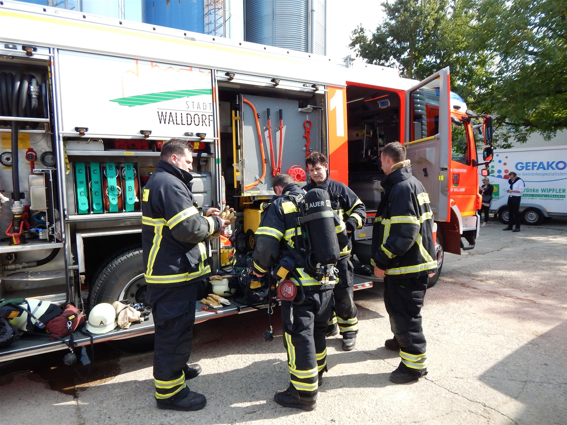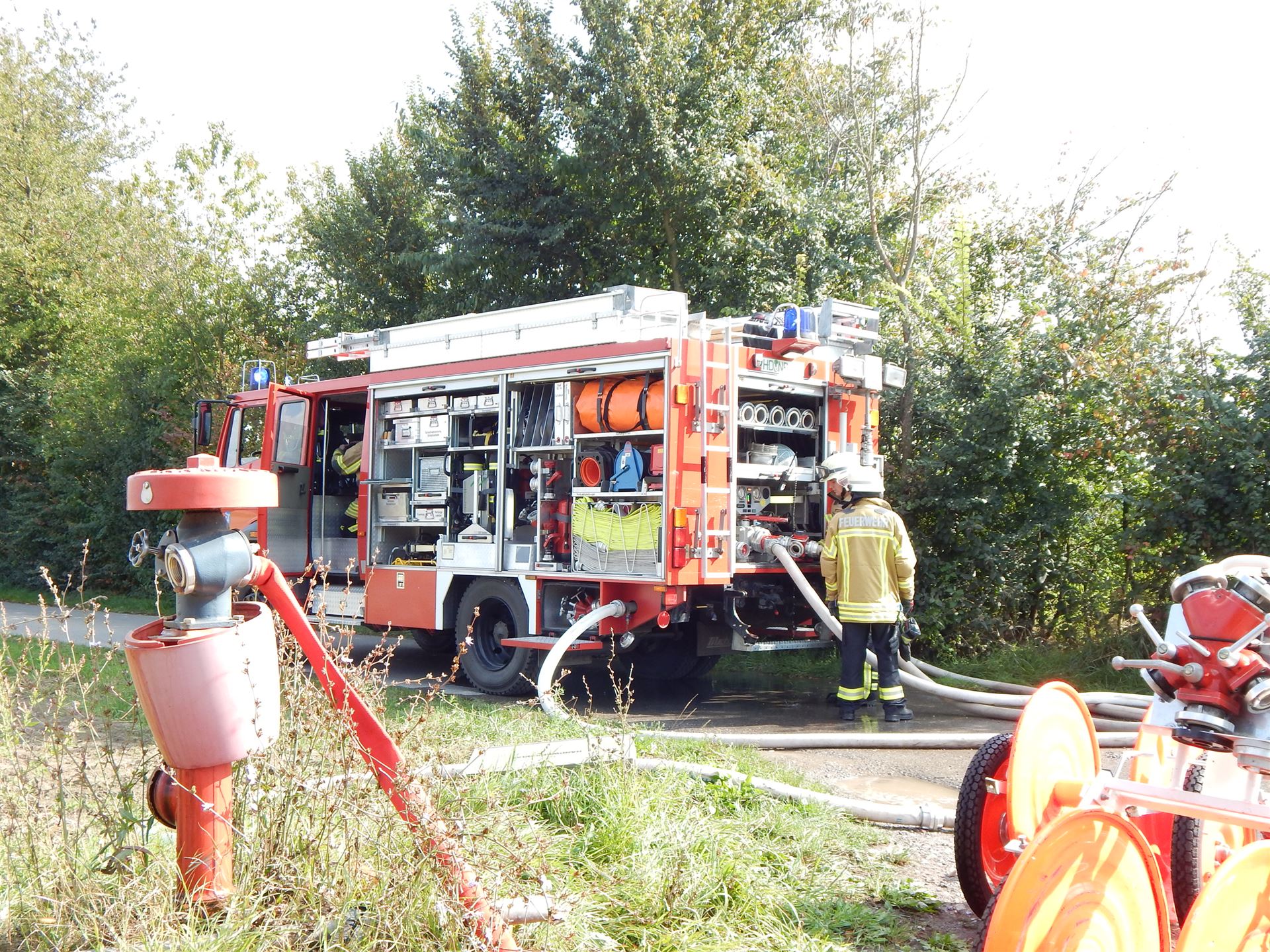 Als am Samstag um 14 Uhr die Piepser gingen, wussten die Kameraden aus Reilingen und Walldorf bereits, dass es sich um eine Alarmübung handelte. Es sollte die Wasserförderung über lange Wegstrecken geübt werden. Hierzu wurde an einem Objekt an der Leimengrube ein Brand einer Halle mit Überschlag auf die benachbarte Halle sowie drei vermissten Personen angenommen. Die Wasserversorgung wurde neben dem nahen Hydranten insbesondere aus dem 1,6km entfernten Bach aufgebaut. Durch die hohe Menge an benötigtem Wasser ist dies unerlässlich. Ziel dieser Übung war es herauszufinden, wie der Aufbau der Wasserversorgung funktioniert und wie das Zusammenspiel mit der benachbarten Feuerwehr Reilingen gelingt. Die nun gewonnen Erkenntnisse fließen in die weiteren Ausarbeitungen ein, um stetig unsere Maßnahmen im Ernstfall optimieren zu können. Ein herzliches Dankeschön gilt auch unserem Kameraden Achim Frey für die Nutzung seiner Räumlichkeiten, ebenso der Jugendfeuerwehr für das Simulieren der vermissten Personen. Im Anschluss an die Übung spielten die Spielmannszüge beider Wehren gemeinsam, bevor der Nachmittag bei frisch gegrillten Steaks und Würstchen sowie kühlen Getränken ausklang.