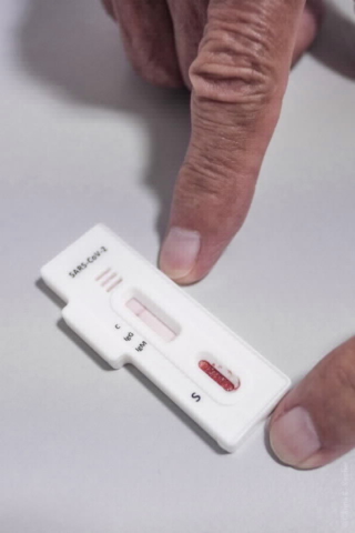 Nach etwa 20 Minuten zeigte der Test durch entsprechende Verfärbung an, ob keine Infektion vorliegt, eine akute Infektion vorliegt oder in der Vergangenheit eine Infektion vorlag (Antikörper gebildet).