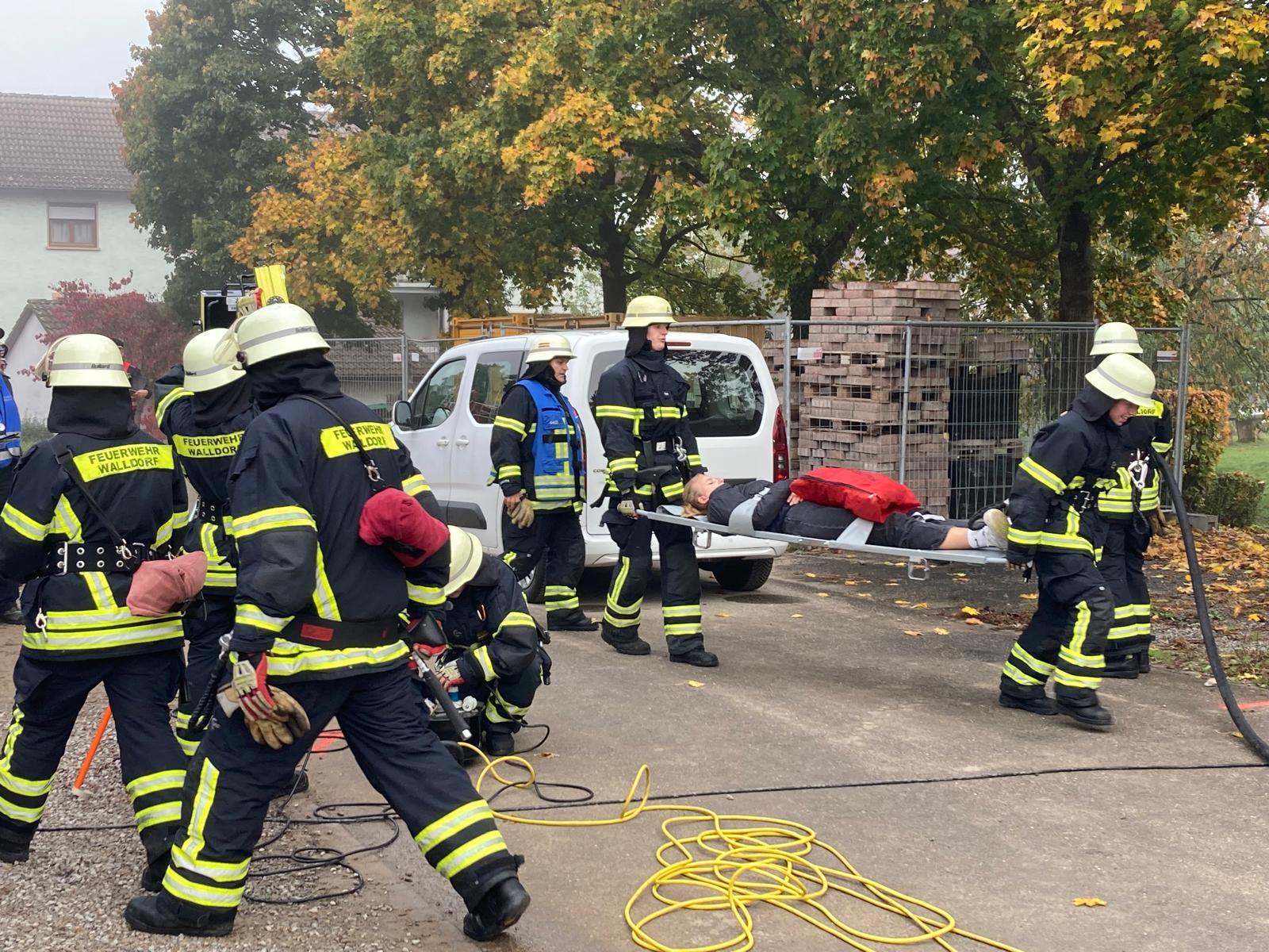 Nach den erfolgreichen Teilnahmen bei den Stufen Bronze und Silber in den vergangenen Jahren haben am 11. Oktober 2025 wieder zwei Gruppen der Feuerwehr Walldorf das Feuerwehr Leistungsabzeichen in Gold bestanden. Hierbei muss eine bestimmte Abfolge an Tätigkeiten in einem vorgegebenen Zeit Fenster absolviert werden, Fehler dürfen nur in ganz geringen Maße gemacht werden. Bei der Stufe Gold ist dies ein Brandbekämpfungsszenario mit Menschenrettung und Schaumangriff unter Atemschutz sowie ein Verkehrsunfall zwischen einem PKW und einem Fahrrad. All das läuft unter den Augen kritischer Schiedsrichter ab. Hinzu kommt eine theoretische Prüfung. In der Regel beinhaltet dies eine monatelange Vorbereitungsphase mit viel Zeit Einsatz. Sämtliche Aufgaben wurden bei der Abnahme von beiden Gruppen innerhalb der zulässigen Grenzen bewältigt und so konnte im Anschluss ausgiebig gefeiert werden.