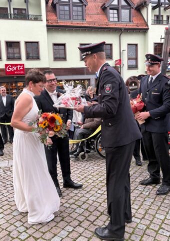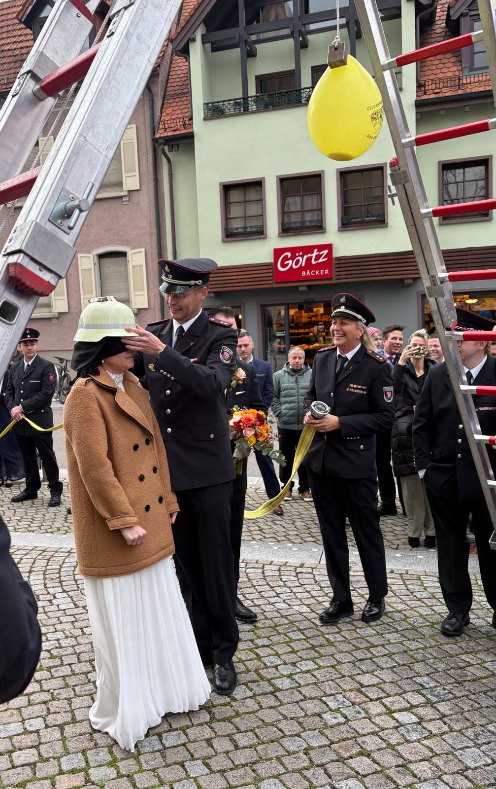 Der ehemalige stellvertretende Abteilungskommandant der Feuerwehr Leimen-St. Ilgen Alexander Specht heirate am 25.10.2025 seine Partnerin Rieke in der evangelischen Kirche in Walldorf. Durch seine frühere Funktion sowie private Kontakte gibt es seit vielen Jahren einen engen Kontakt zwischen ihm und den Walldorfer Feuerwehrangehörigen. Da die Hochzeit auch noch in Walldorf stattfand, kamen selbstverständlich viele Walldorfer Einsatzkräfte zum Sparlierstehen. Und natürlich waren auch die Feuerwehrleute aus St. Ilgen vor Ort.