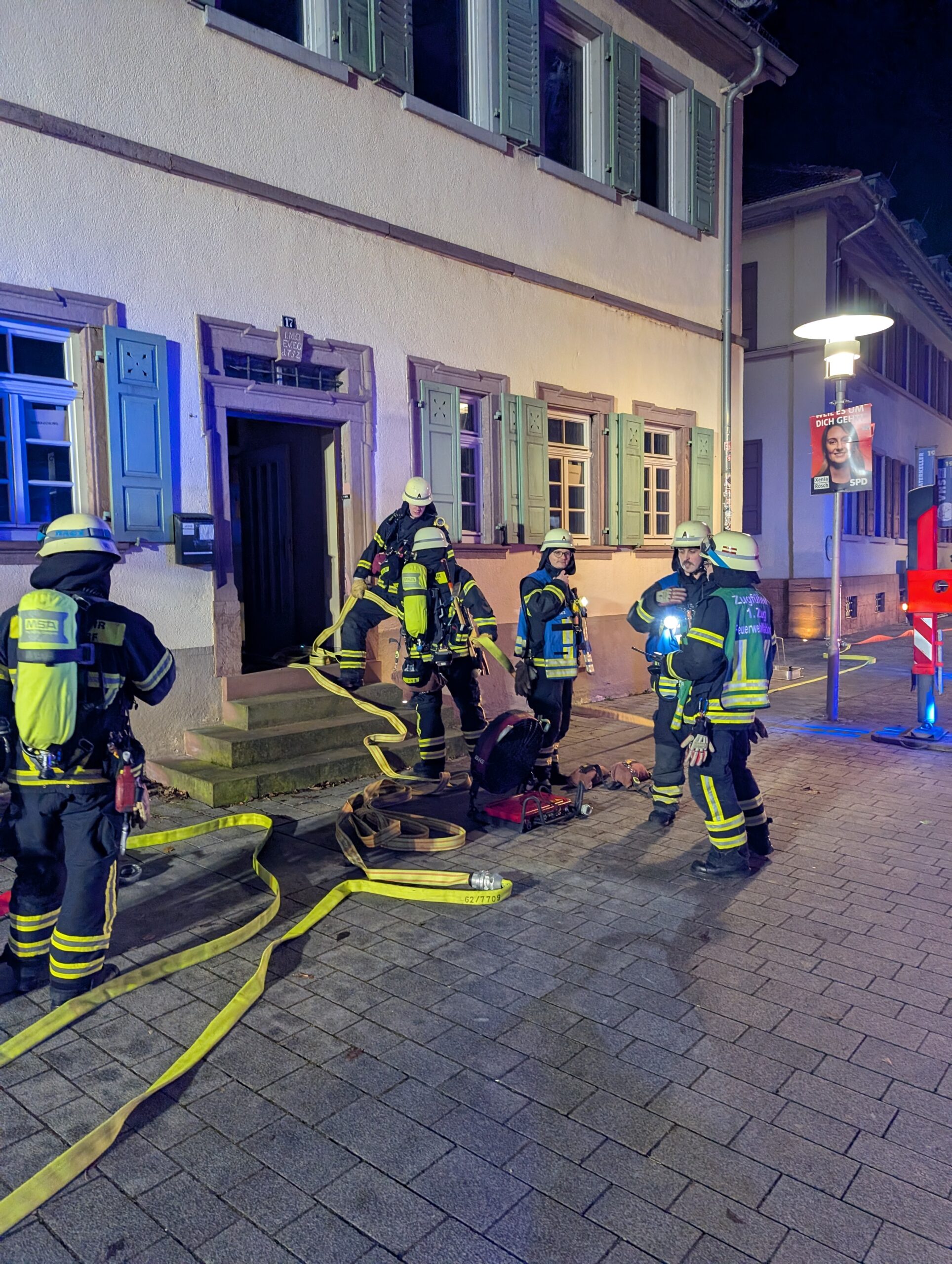 Nach einer ersten Erkundung ging der Angriffstrupp des ersten Löschgruppenfahrzeuges zur Brandbekämpfung und Menschenrettung vor. Die Räume wurden abgesucht, um das Feuer zu lokalisieren. Zeitgleich wurde nach Personen ausschau gehalten. Schnell konnte eine Person gefunden und gerettet werden. Im Anschluss wurde schließlich das Feuer im Obergeschoss bekämpft. Zwischenzeitlich war auch das zweite Löschgruppenfahrzeug sowie das Hilfeleistungslöschfahrzeug eingetroffen und unterstützten bei den Maßnahmen.