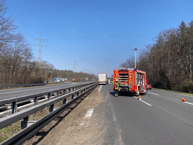 Es kam zu einem Verkehrsunfall mit einem LKW. Der Fahrer war nicht eingeklemmt, wurde allerdings schonend mit dem Spinboard aus dem Führerhaus gerettet.