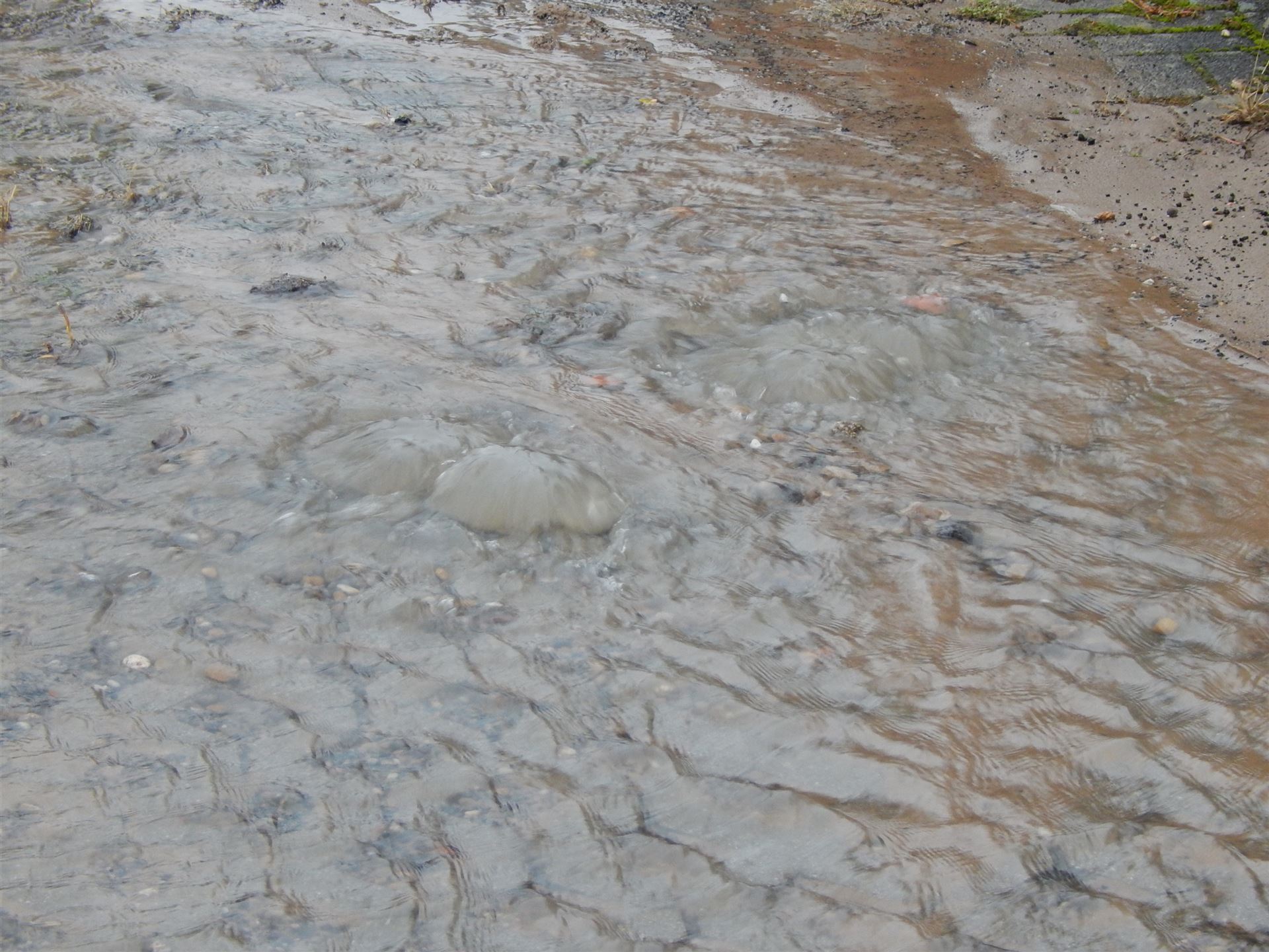 Aus dem Boden eines Parkplatzes kam Wasser gesprudelt, welches auf die Straße lief. Bis zum Eintreffen der Stadtwerke wurde der Parkplatz geräumt sowie erkundet, ob die Zuleitung zum Haus separat abgestellt werden kann. Die Stadtwerke haben weitere Maßnahmen zur Behebung des vermutlichen Wasserrohrbruchs eingeleitet.