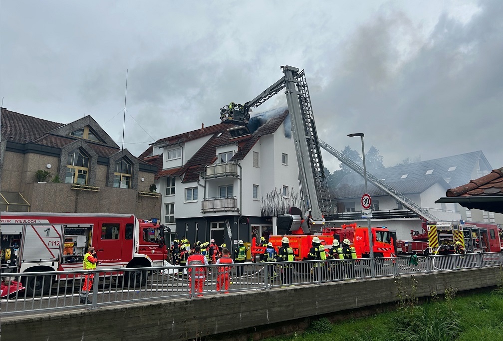 Person aus dem 1. OG mittels Teleskopmast gerettet und dem Rettungsdienst übergeben.