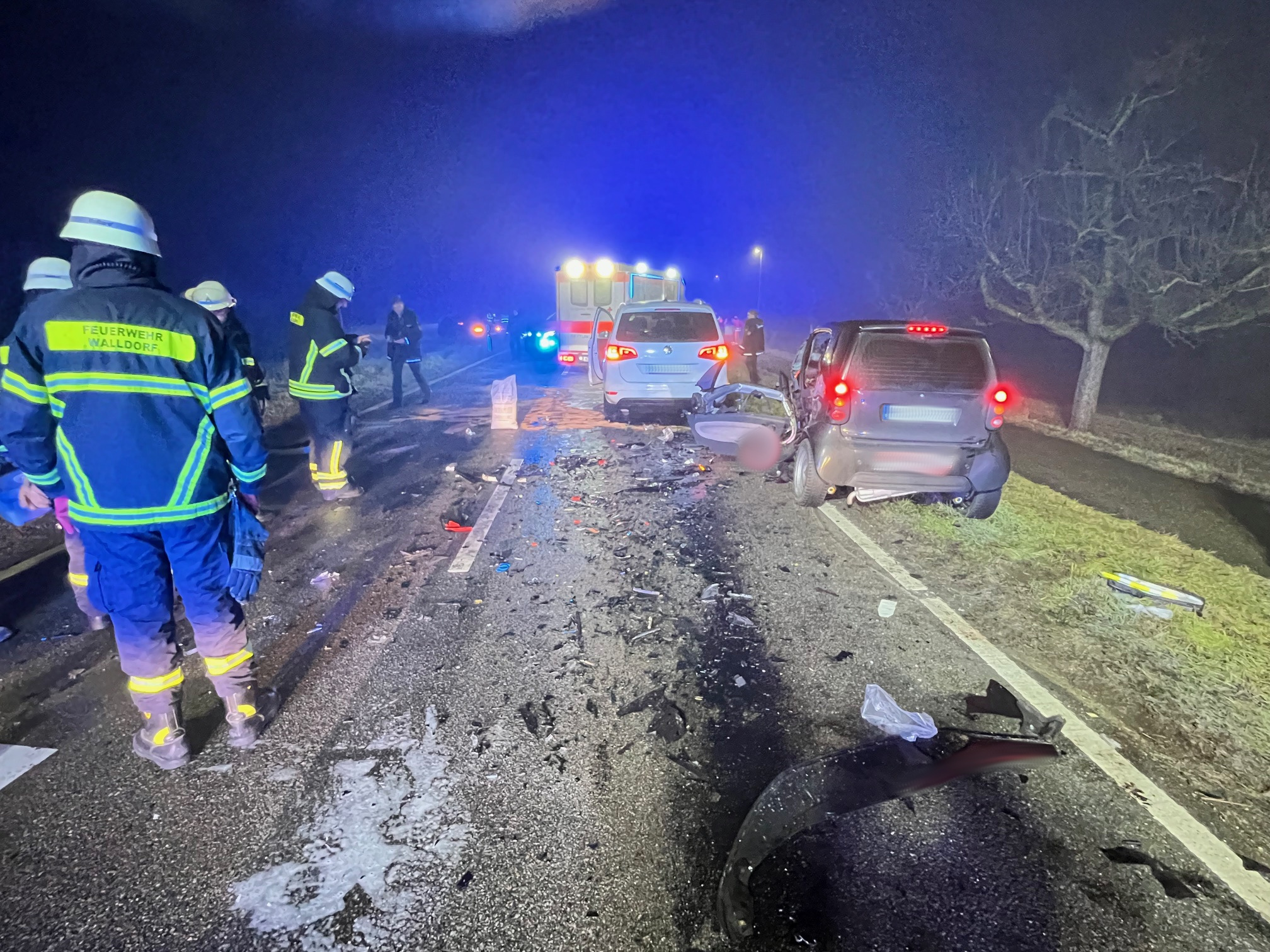 Auf der Wieslocher Straße kam es gegen 05:45 Uhr des 04.02.2026 zu einem tödlichen Verkehrsunfall. Beim Eintreffen an der Einsatzstelle konnten zwei verunfallte Fahrzeuge festgestellt werden. Eine Person befand sich leblos auf dem Fahrersitz. Diese wurde aus ihrem Fahrzeug befreit und an den Rettungsdienst übergeben. Für die Polizei wurde die Einsatzstelle in der Folge noch weiter zur Unfallaufnahme ausgeleuchtet.
